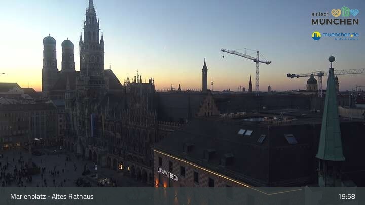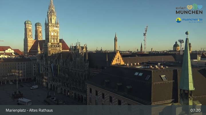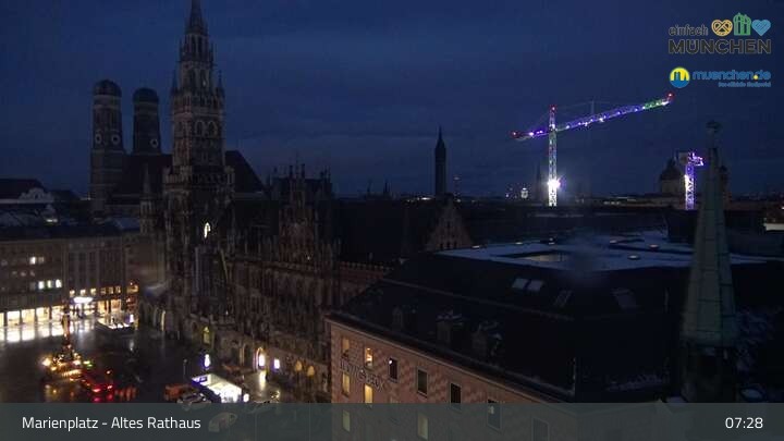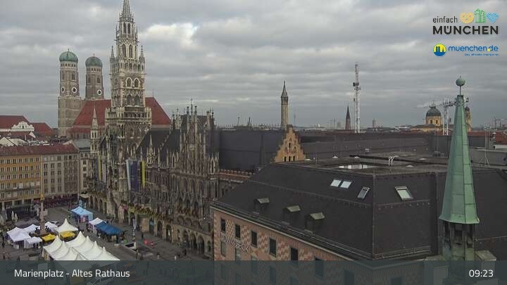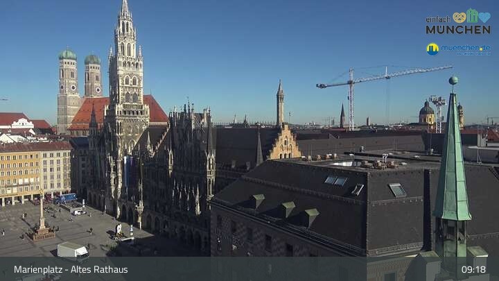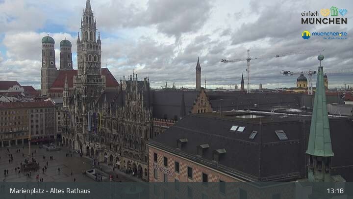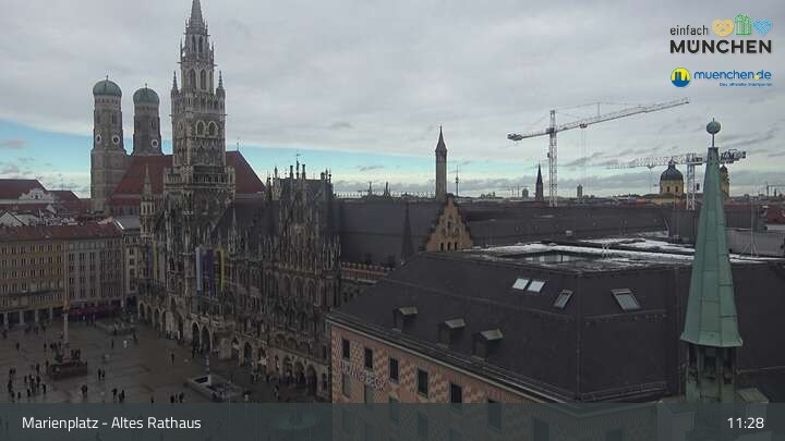 Die Webcam blickt vom Alten Rathaus auf den Marienplatz, der zentrale Platz der Münchener Innenstadt.