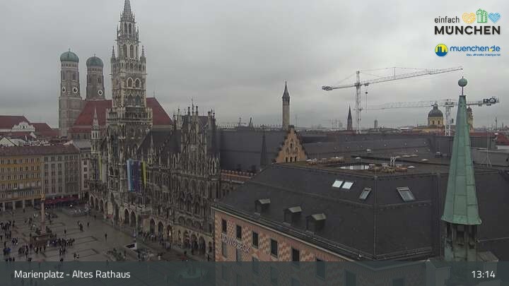 Die Webcam blickt vom Alten Rathaus auf den Marienplatz, der zentrale Platz der Münchener Innenstadt.