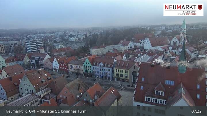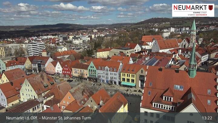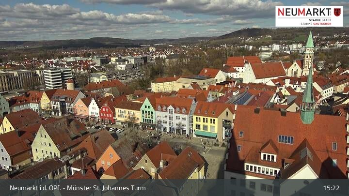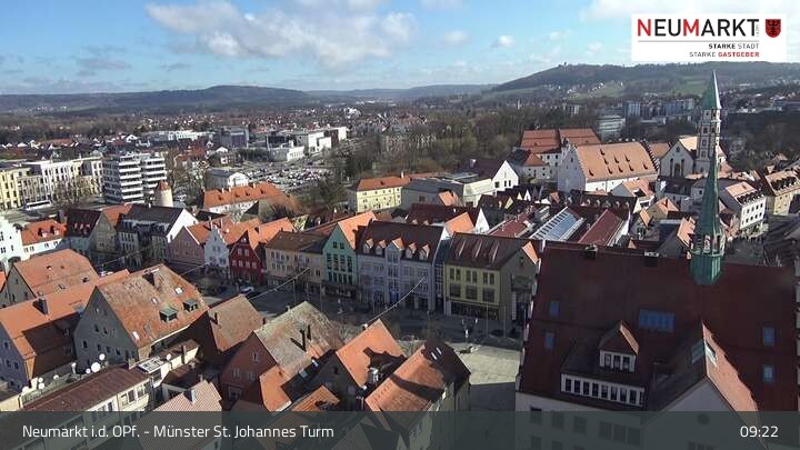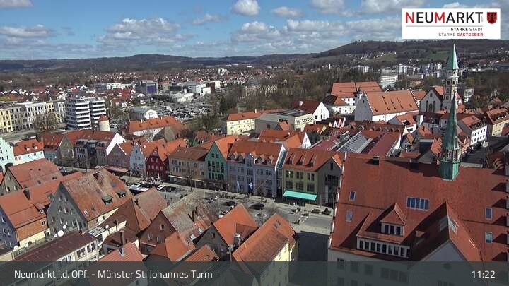 Die Webcam befindet sich am Turm der St. Johannes Kirche in Neumarkt in der Oberpfalz und zeigt einen tollen Panoramablick über die Stadt.