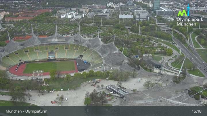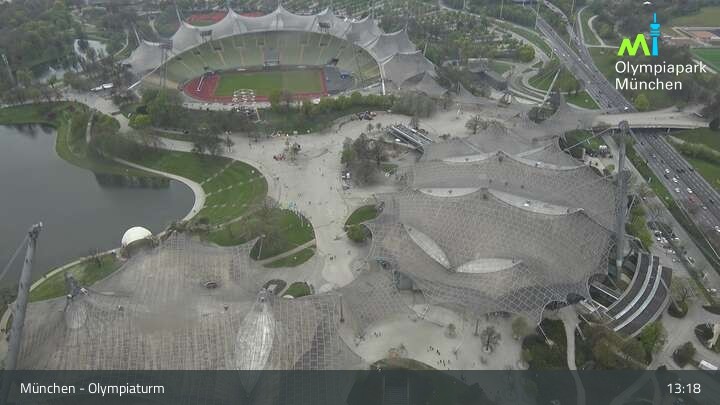 Im nordwestlichen Teil der Münchner Innenstadt befindet sich am Olympiaturm diese Webcam mit dem direkten Blick auf den Olympiapark. Zu sehen sind unter anderem das Olympiastadion und die Olympiahalle, beliebte Orte für Veranstaltungen und Konzerte. Wichtiger Hinweis: Bei großen Veranstaltungen kann es sein, dass die Webcam vorübergehend deaktiviert wird.