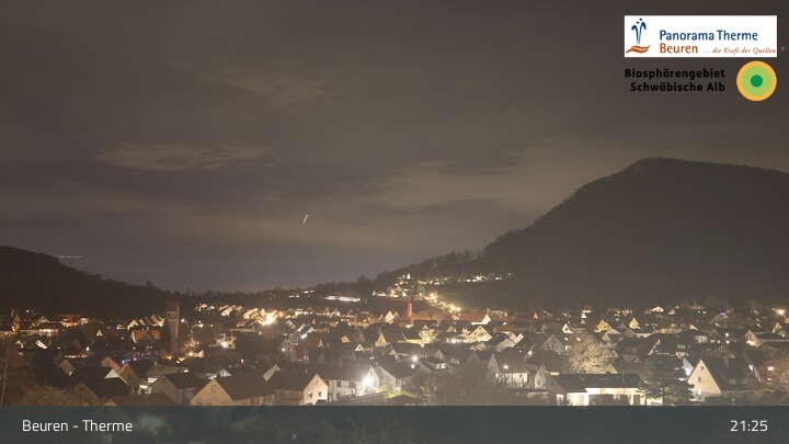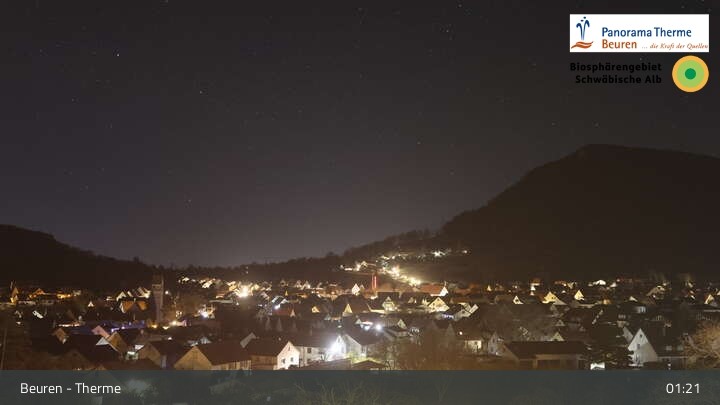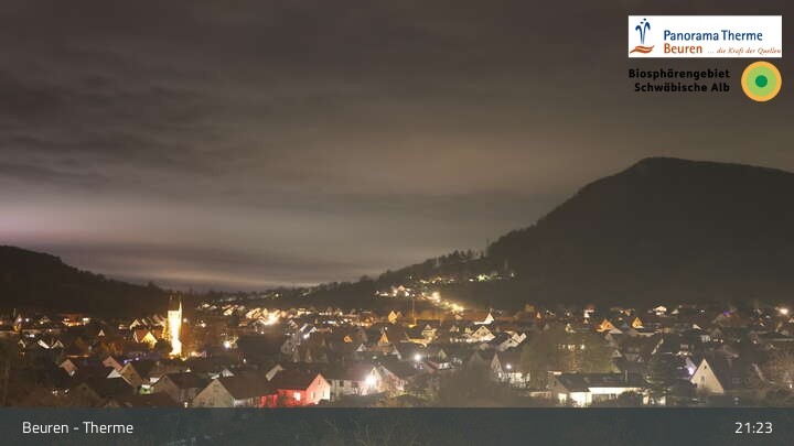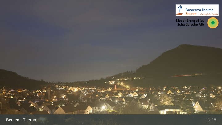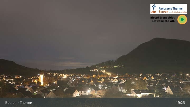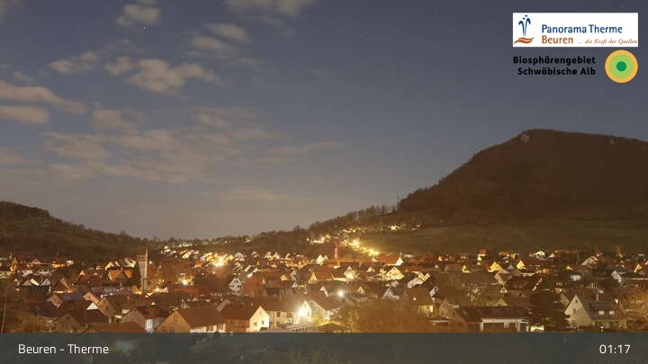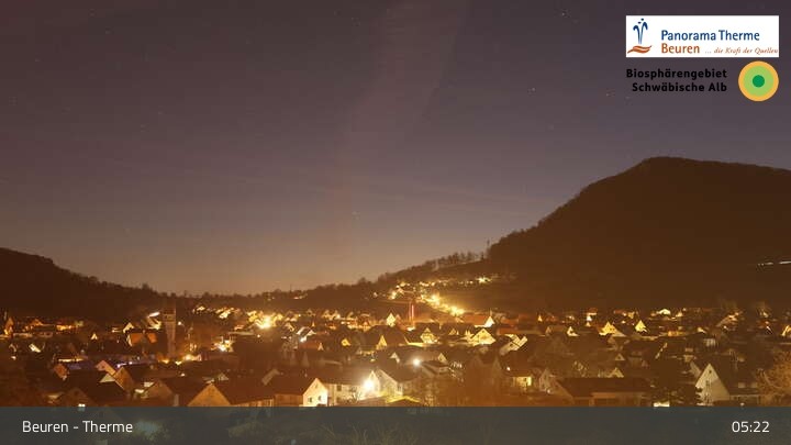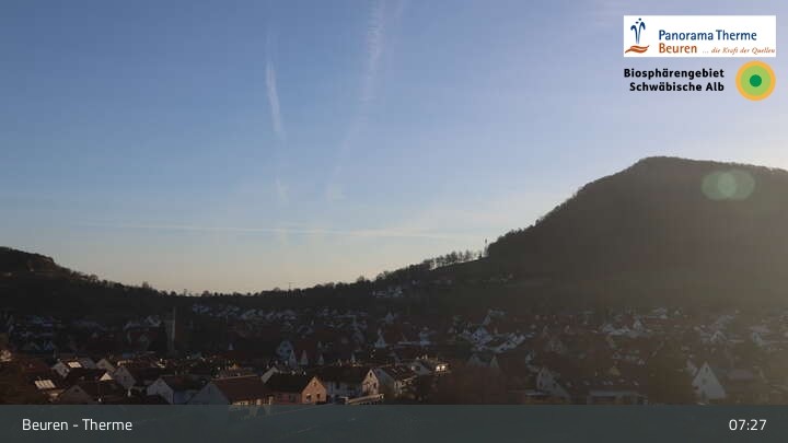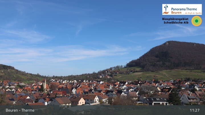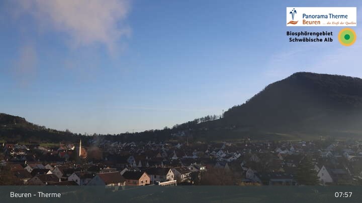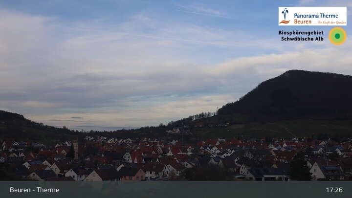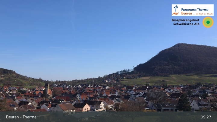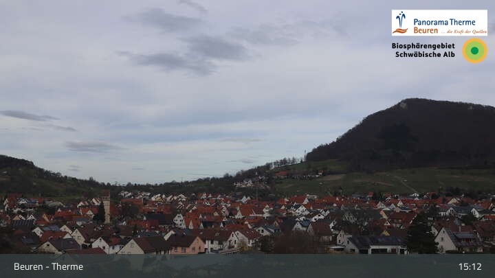 Blick über Beuren in der Schwäbischen Alb. Die Webcam befindet sich in der Panorama Therme Beuren.