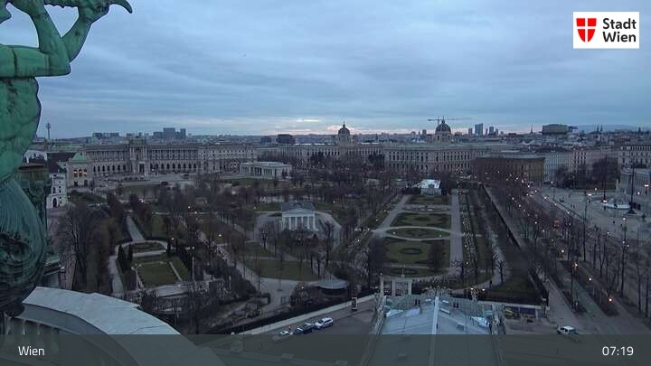 Die Webcam bietet dir einen Rundumblick über den ersten Wiener Bezirk. Du siehst das Burgtheater und das Rathaus.