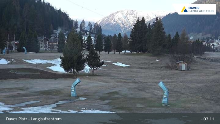 Blick auf den Golfplatz in Davos. Im Winter befindet sicher hier das Langlaufzentrum.
