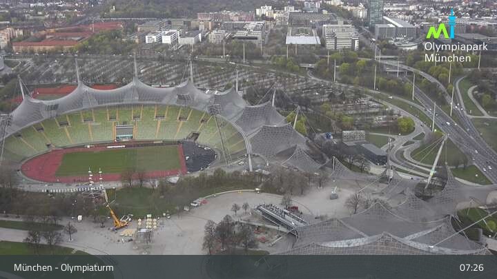Im nordwestlichen Teil der Münchner Innenstadt befindet sich am Olympiaturm diese Webcam mit dem direkten Blick auf den Olympiapark. Zu sehen sind unter anderem das Olympiastadion und die Olympiahalle, beliebte Orte für Veranstaltungen und Konzerte. Wichtiger Hinweis: Bei großen Veranstaltungen kann es sein, dass die Webcam vorübergehend deaktiviert wird.