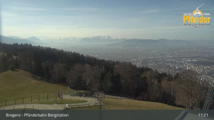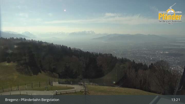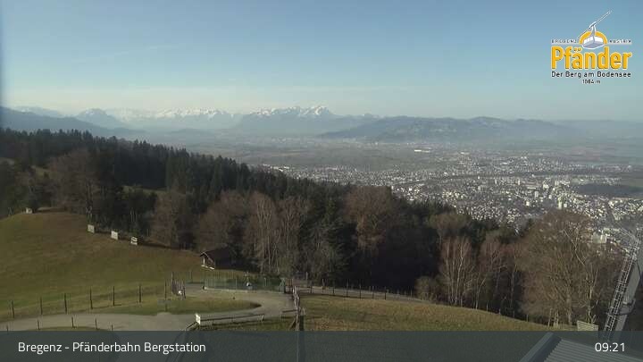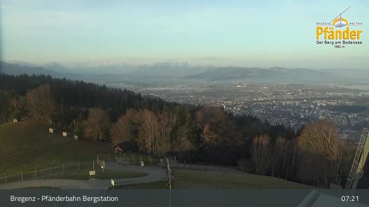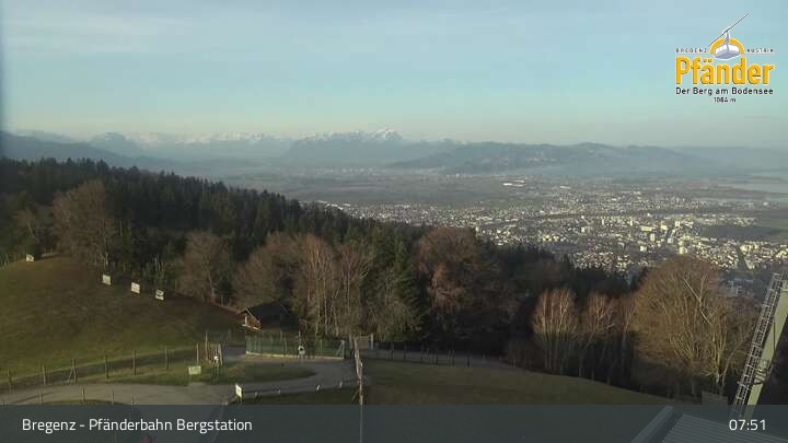 Die Video-Webcam zeigt einen traumhaften Panoramablick von der Bergstation am Pfänder hinunter auf den Bodensee und die Stadt Bregenz.