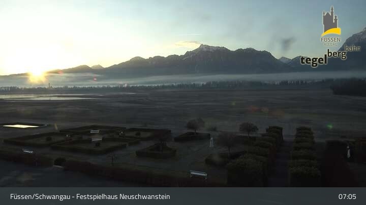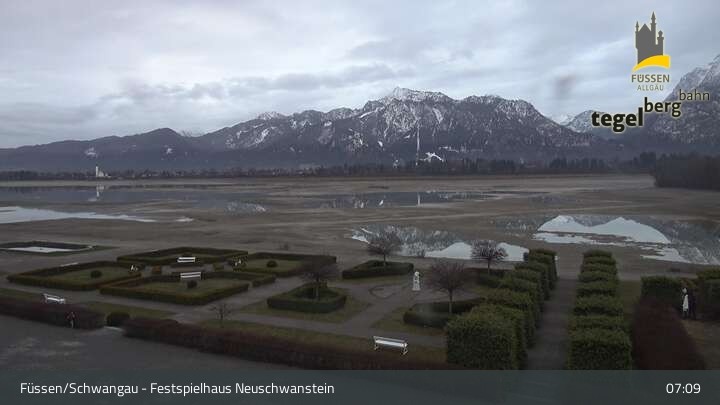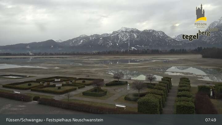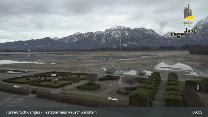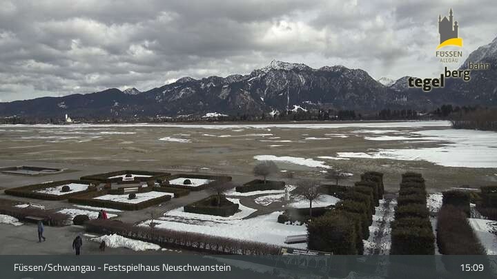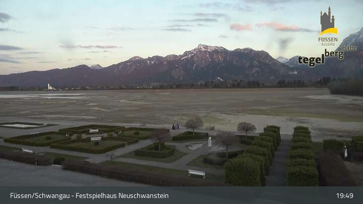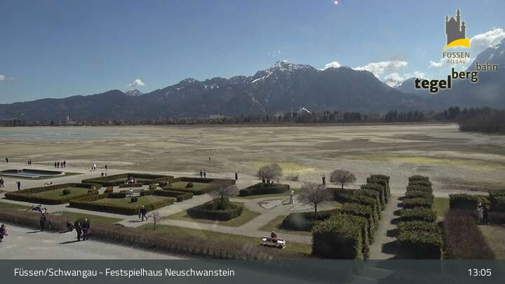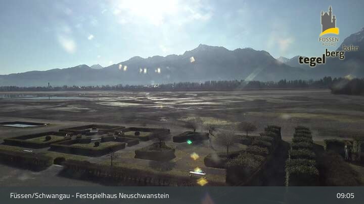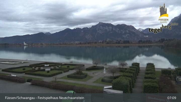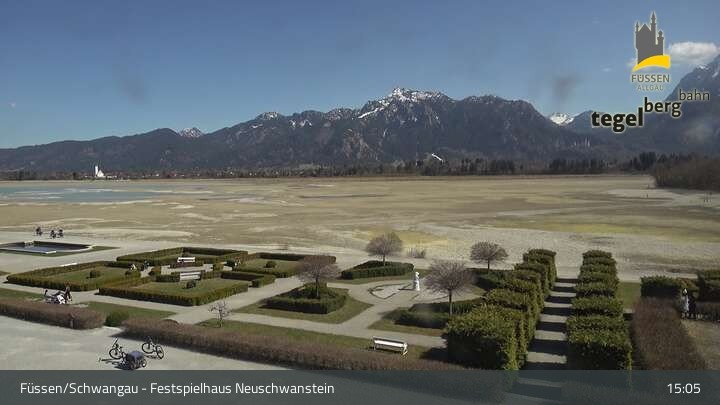 Die Webcam blickt auf den Garten von Ludwigs Festspielhaus in Füssen am Forggensee.