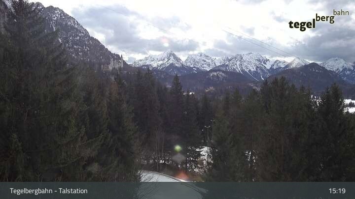 Die Webcam zeigt dir die Region Schwangau von der Talstation der Tegelbergbahn aus.