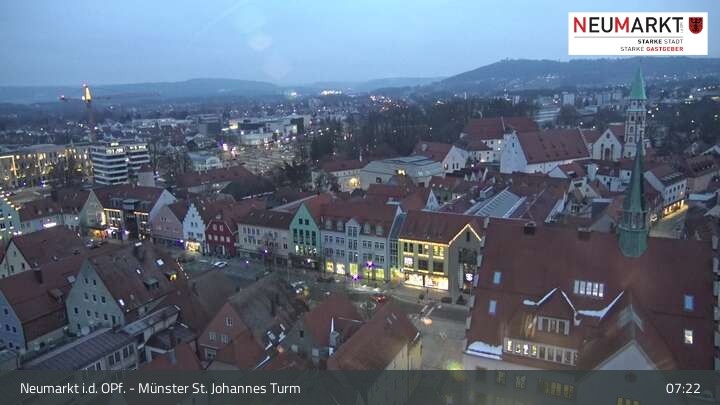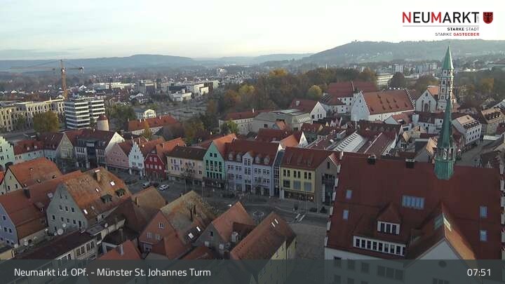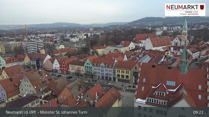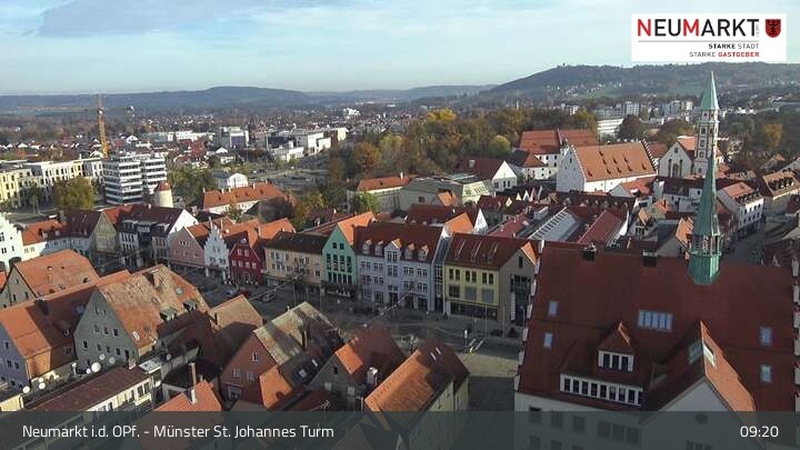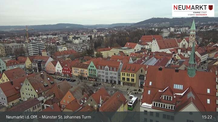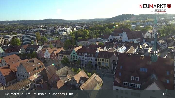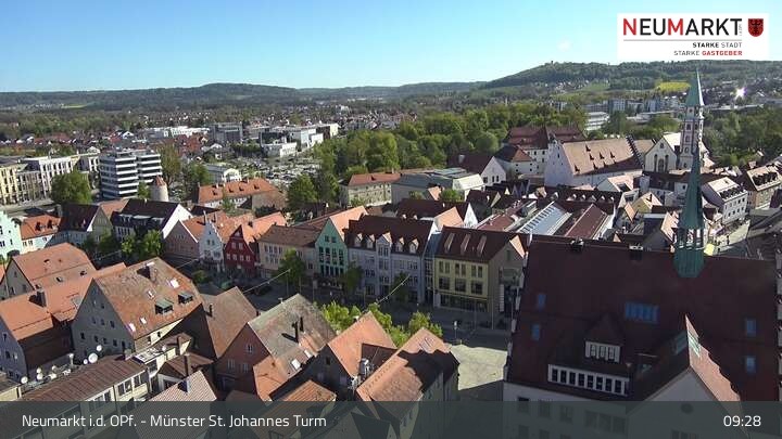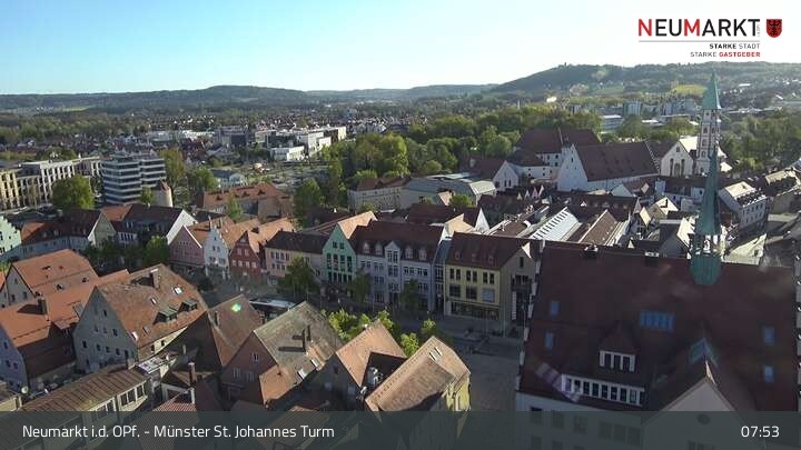 Die Webcam befindet sich am Turm der St. Johannes Kirche in Neumarkt in der Oberpfalz und zeigt einen tollen Panoramablick über die Stadt.