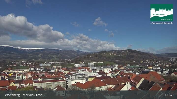 Diese Webcam befindet sich an der Markuskirche im Kärntner Ort Wolfsberg (Lavanttal, Österreich). Du kannst unter anderem die Altstadt sowie das Schloss Wolfsberg erkennen.