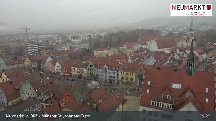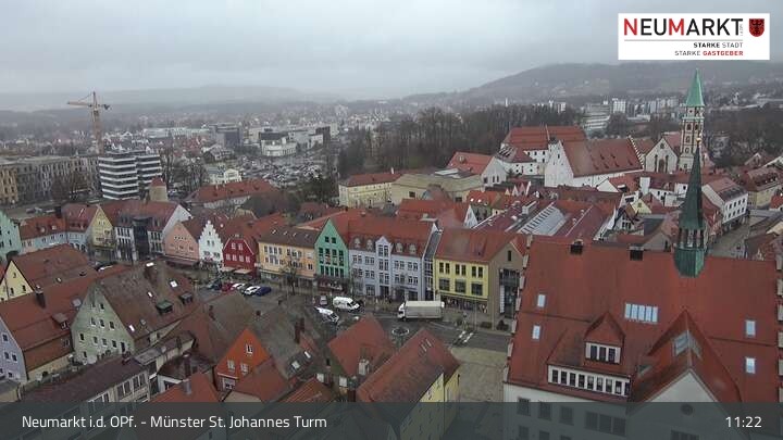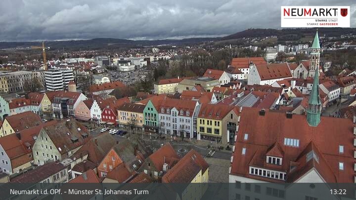 Die Webcam befindet sich am Turm der St. Johannes Kirche in Neumarkt in der Oberpfalz und zeigt einen tollen Panoramablick über die Stadt.