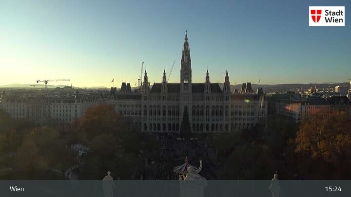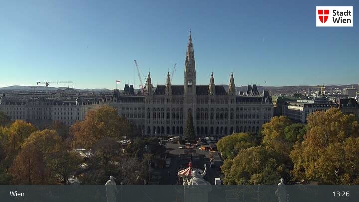 Die Webcam bietet dir einen Rundumblick über den ersten Wiener Bezirk. Du siehst das Burgtheater und das Rathaus.