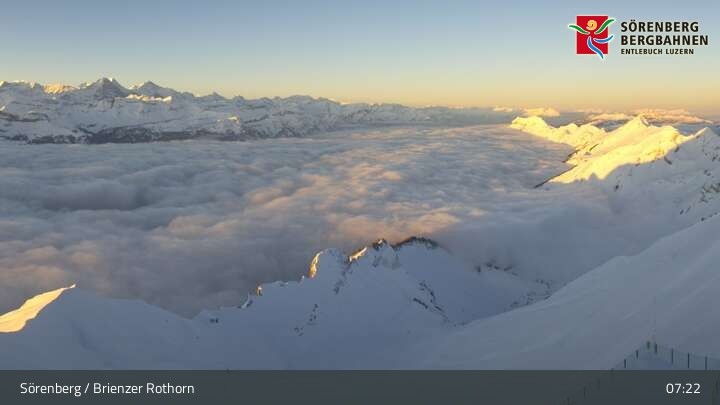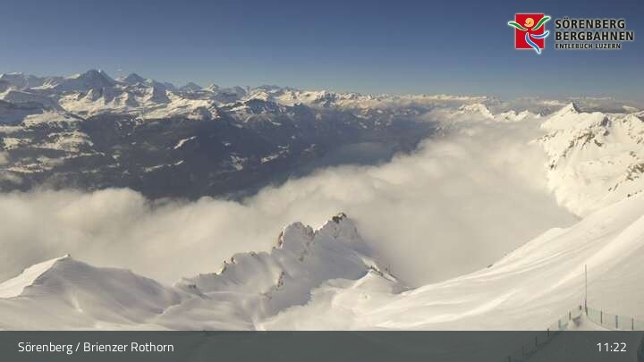 Die Webcam eröffnet dir den Blick vom 2.350 Meter hohen Rothorn zum Brienzersee.