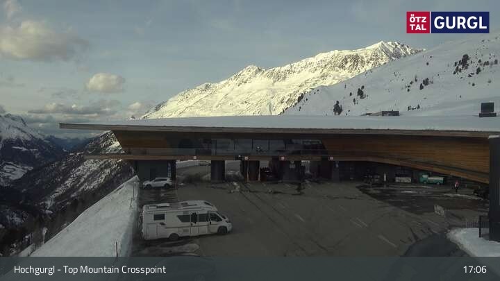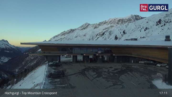 Hier blickst du auf den Top Mountain Crosspoint bei Hochgurgl im Tiroler Ötztal. Es handelt sich dabei um die Mautstation zur Timmelsjocher Hochalpenstraße. In dem Gebäude befindet sich unter anderem auch das höchste Motorradmuseum der Welt.