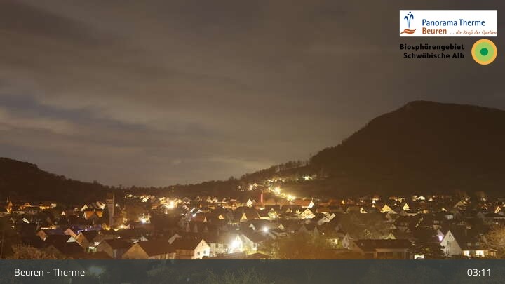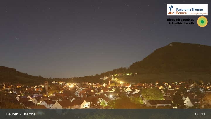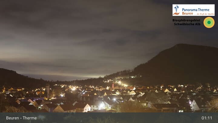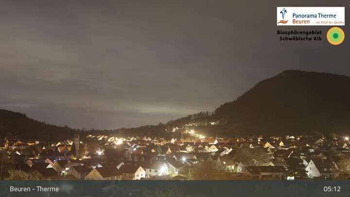 Blick über Beuren in der Schwäbischen Alb. Die Webcam befindet sich in der Panorama Therme Beuren.