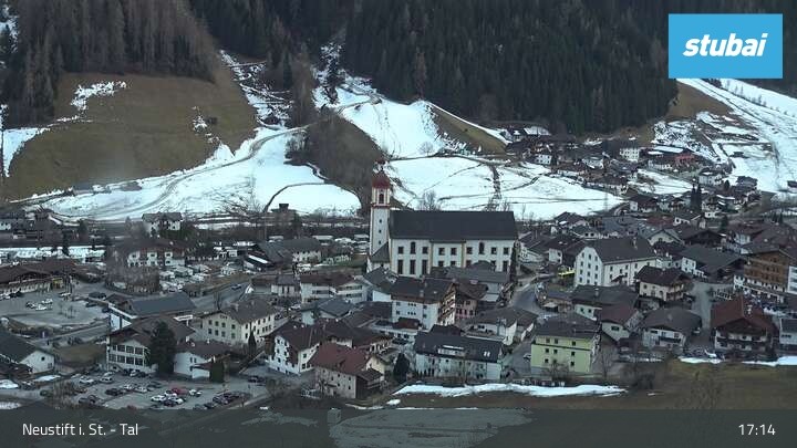 Die Webcam blickt auf den kleinen Ort Neustift im Stubaital.