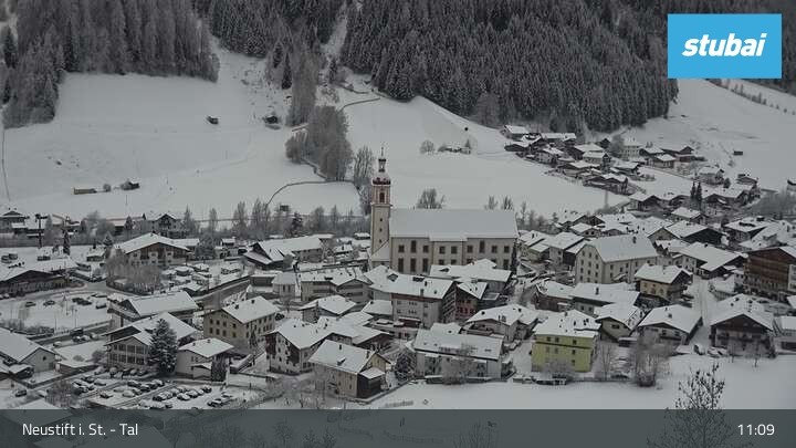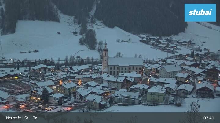 Die Webcam blickt auf den kleinen Ort Neustift im Stubaital.