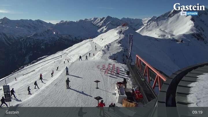 Die Webcam blickt von der Südseite der Bergstation am Stubnerkogel auf die umliegende Bergwelt von Bad Gastein.