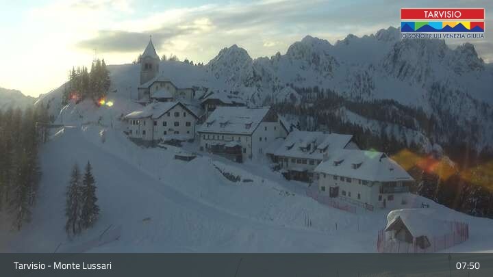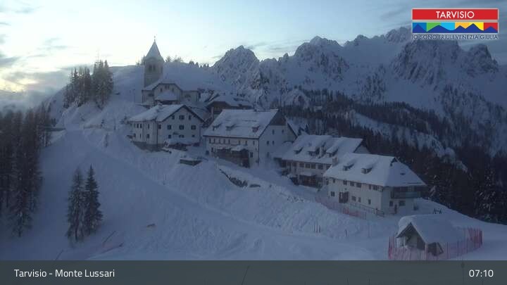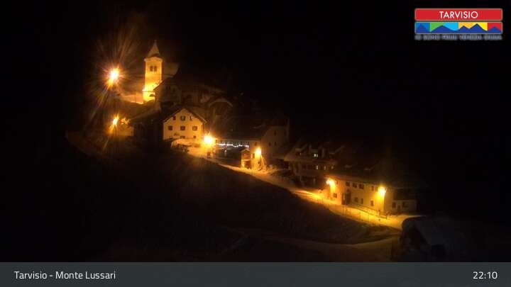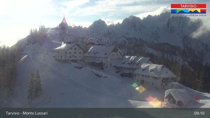 Die Webcam zeigt die Bergwelt rund um den Monte di Lussari.