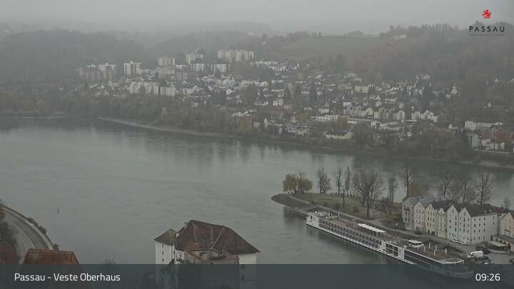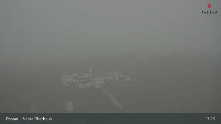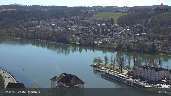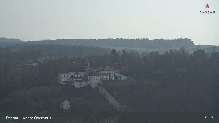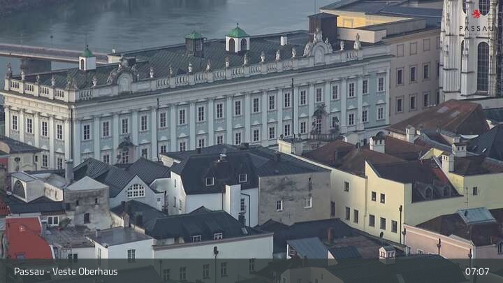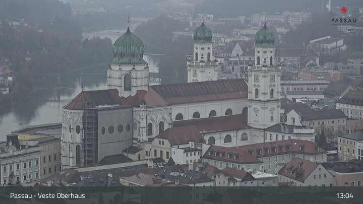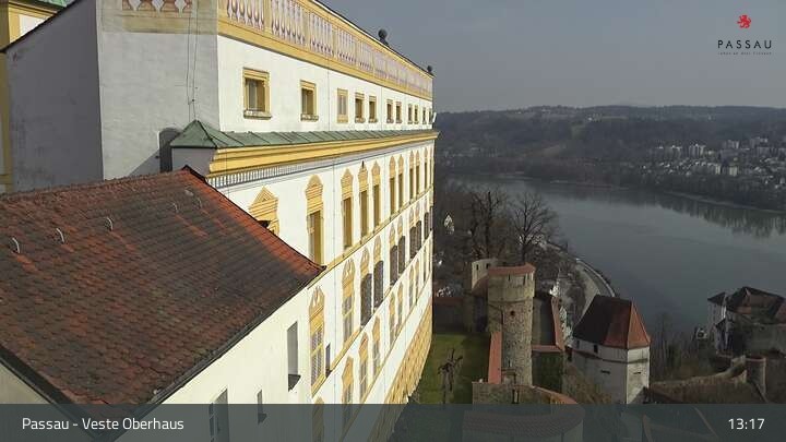 Die Webcam zeigt dir den Blick von der Veste Oberhaus über die Donau zur Altstadt der niederbayerischen Stadt Passau. Sehr gut zu erkennen sind links Teile der Burgveste, die Ortspitze wo die drei Flüsse Donau, Inn und Ilz zusammenfließen, die Hängebrücke über die Donau und rechts der weiße Stephansdom.