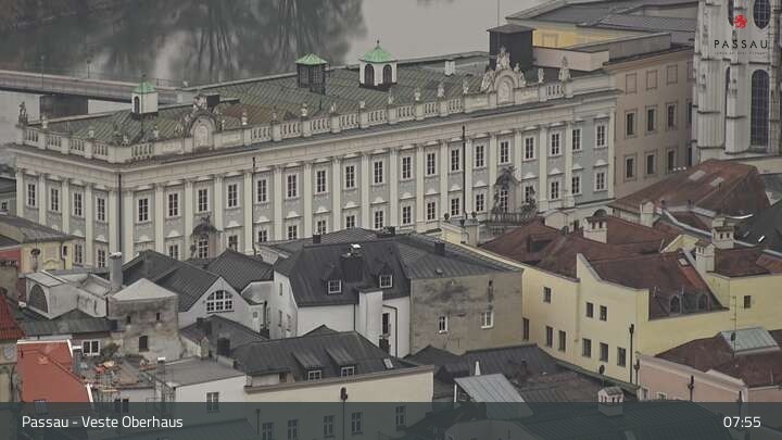 Archiv Foto Webcam Passau: Panoramablick auf Donau, Ortspitze und Altstadt 08:00 08:00