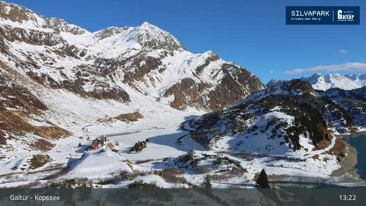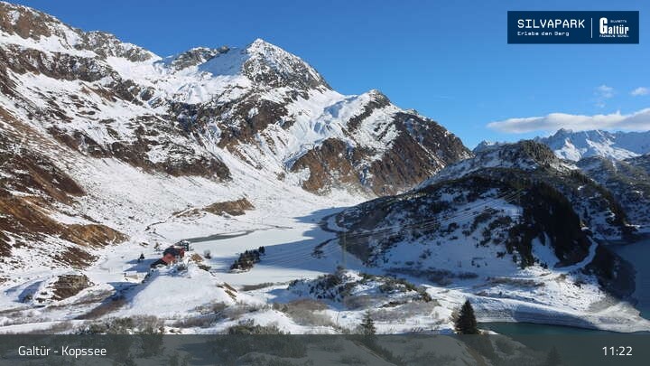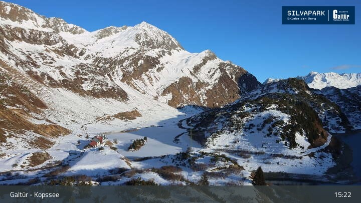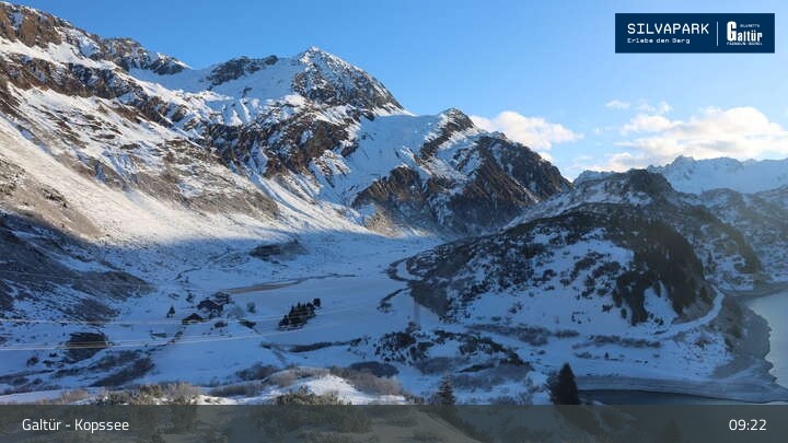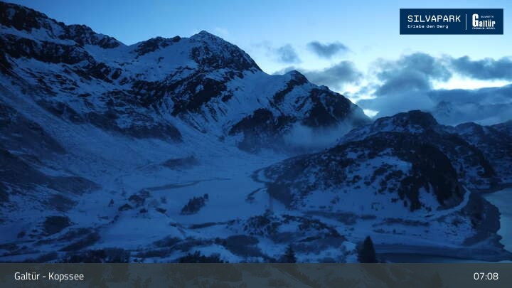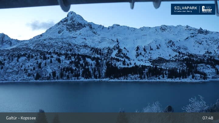 Hier siehst du den Stausee Kops in Galtür, der in den österreichischen Alpen im Bundesland Vorarlberg in der Silvretta-Gruppe liegt.