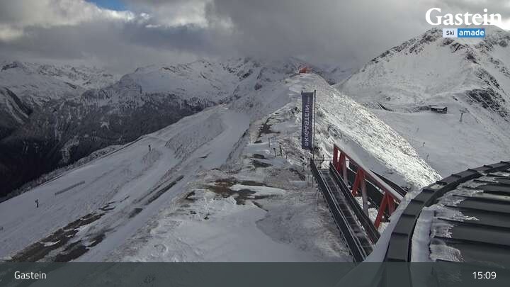 Die Webcam blickt von der Südseite der Bergstation am Stubnerkogel auf die umliegende Bergwelt von Bad Gastein.