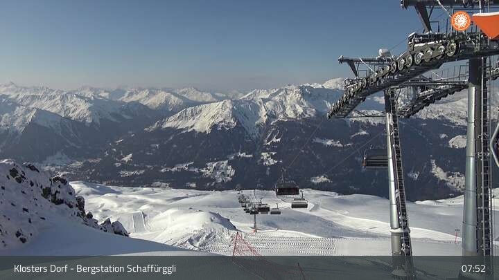 Diese Webcam zeigt die Bergstation des Schaffürggli Lifts auf der Madrisa. Der 2.770 m hohe Berg in den schweizer Alpen bietet vielfältige Wander- und Erlebniswege.