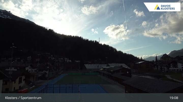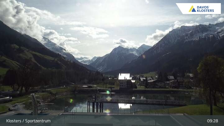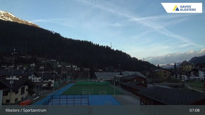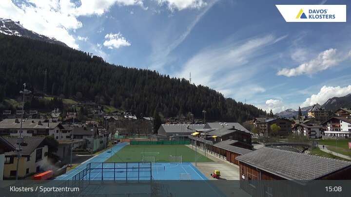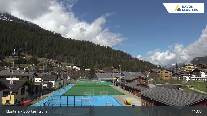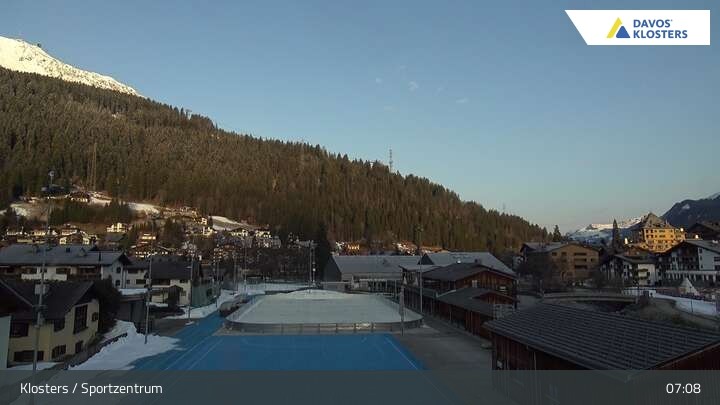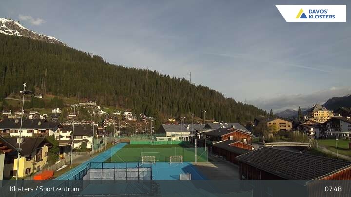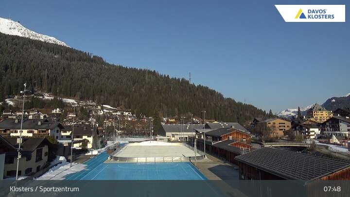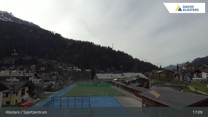 Hier siehst du das Sportzentrum und das Freibad in Klosters
