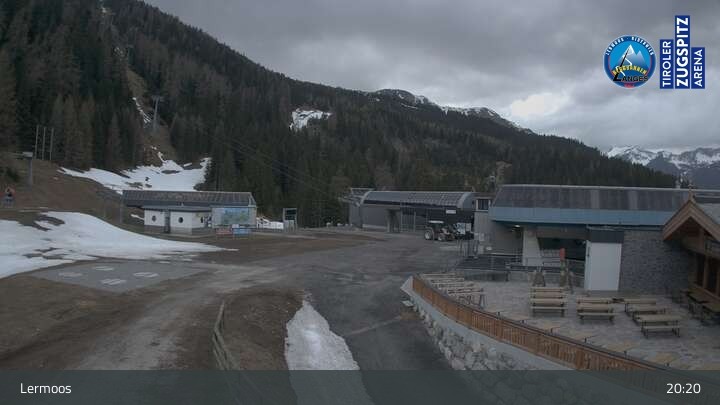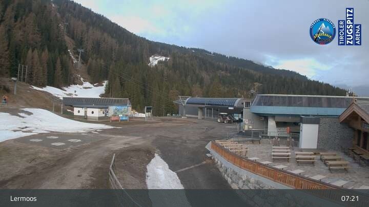 Die Webcam befindet sich an der Bergstation des Hochmoos Express in Lermoos und blickt auf die umliegenden Alpen.