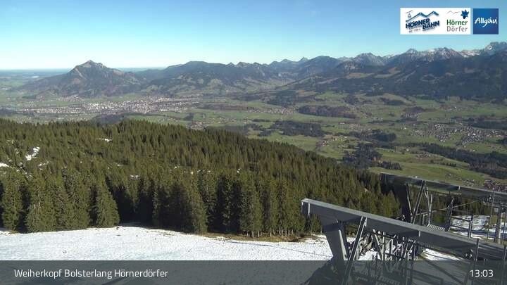 Die Kamera bietet einen tollen Ausblick von der Bergstation der Weiherkopf-Sesselbahn bei Bolsterlang im Allgäu.