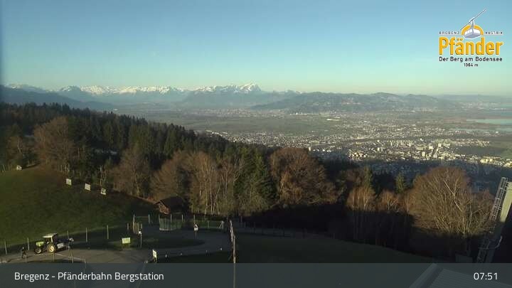 Die Video-Webcam zeigt einen traumhaften Panoramablick von der Bergstation am Pfänder hinunter auf den Bodensee und die Stadt Bregenz.