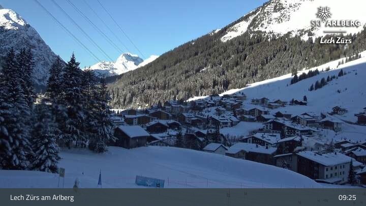 Genieße den Ausblick über die Ortschaft Oberlech sowie die umliegende Bergwelt.