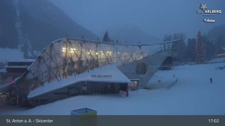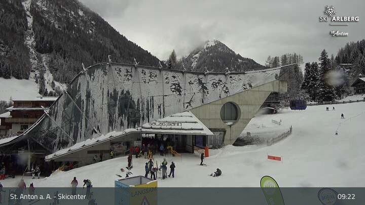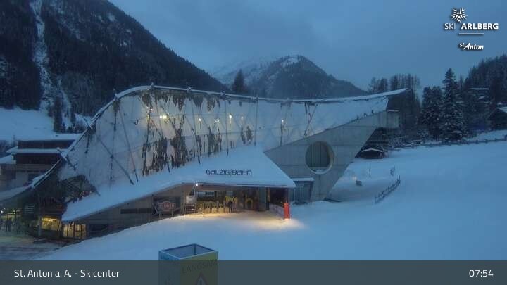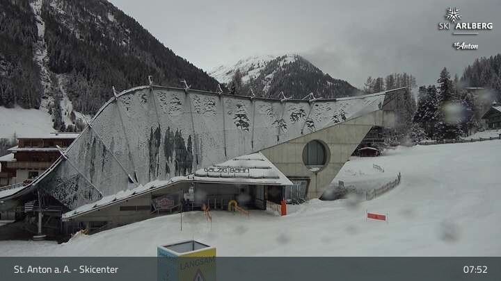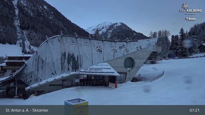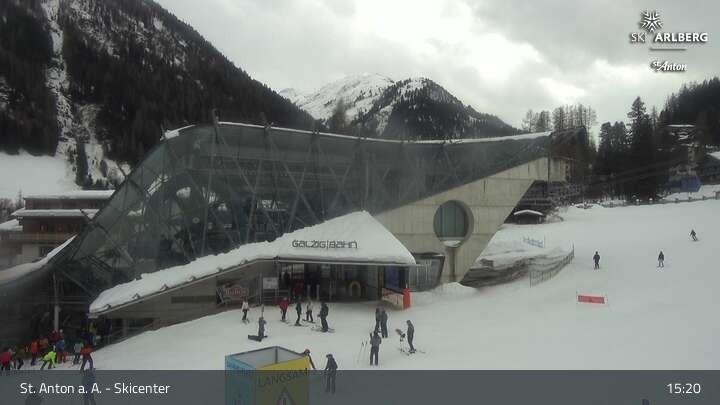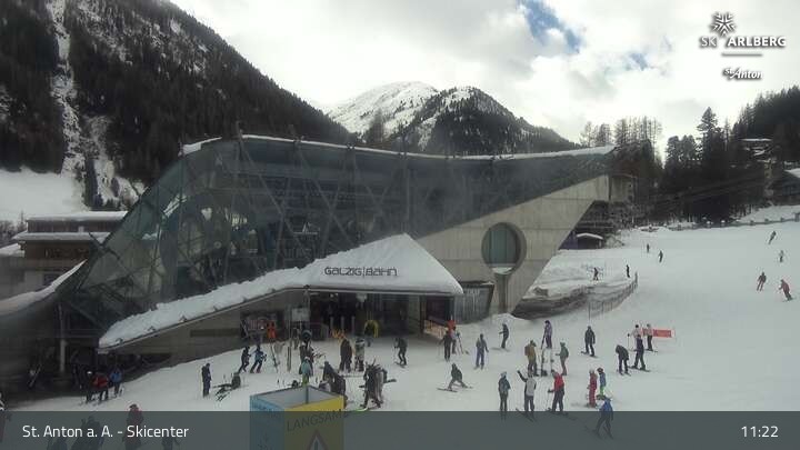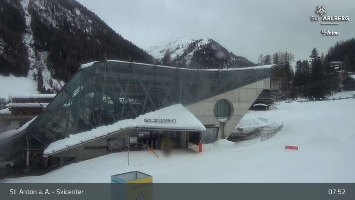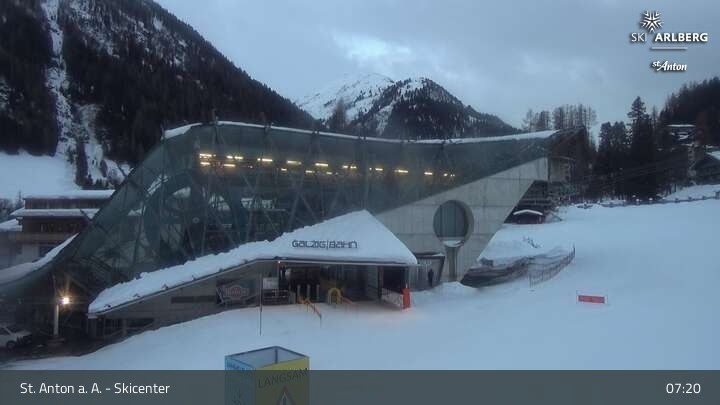 Diese Webcam zeigt dir den Blick vom Skicenter an der Talstation der Galzigbahn in St. Anton.