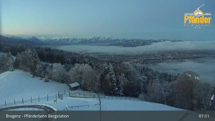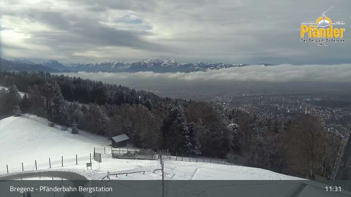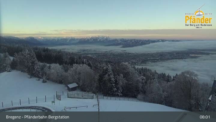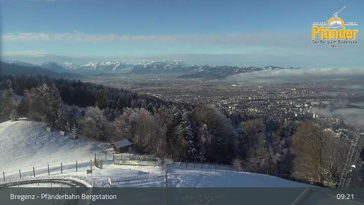 Die Video-Webcam zeigt einen traumhaften Panoramablick von der Bergstation am Pfänder hinunter auf den Bodensee und die Stadt Bregenz.