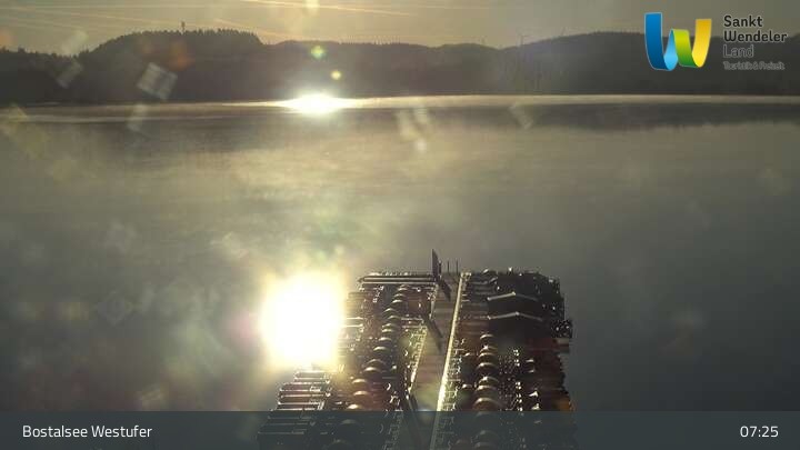 Die Kamera ist am westlichen Ufer des Bostalsee im Saarland positioniert.