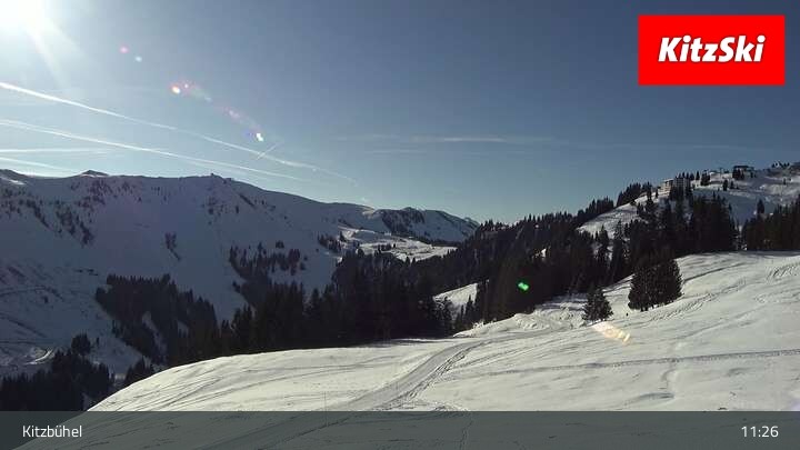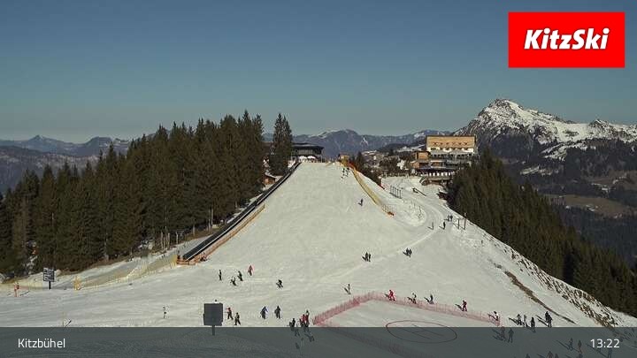 Die Webcam zeigt der den Blick vom Berghaus Walde am Hahnenkamm. Gut erkennen kann man unter anderem die Bergstation der Hahnenkammbahn.