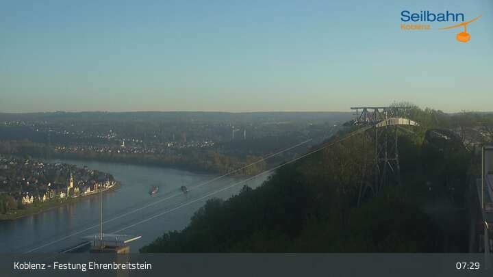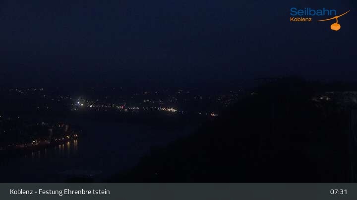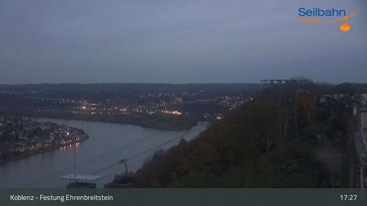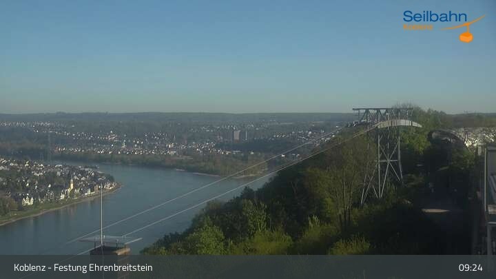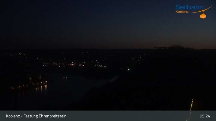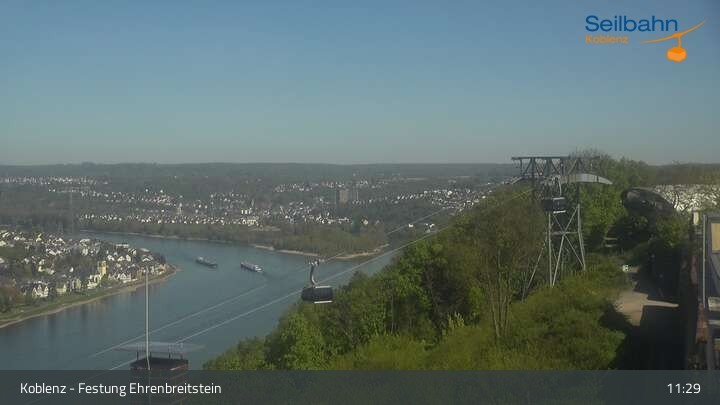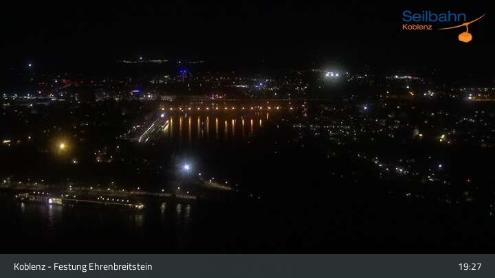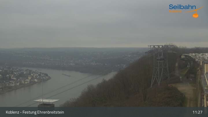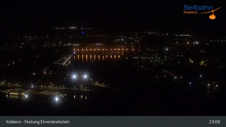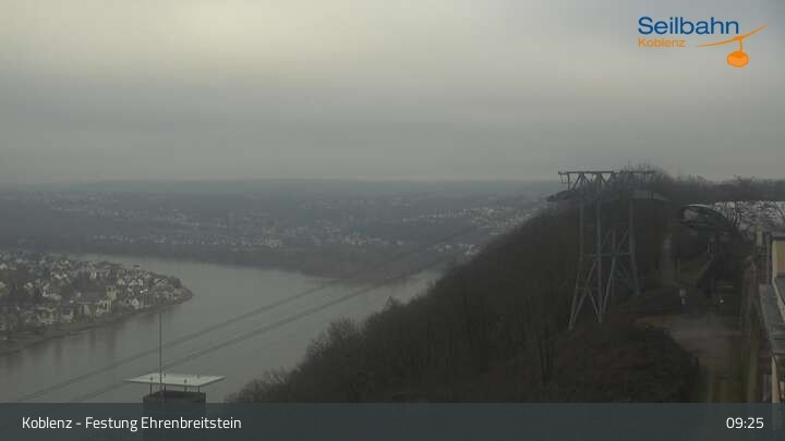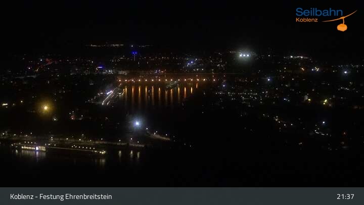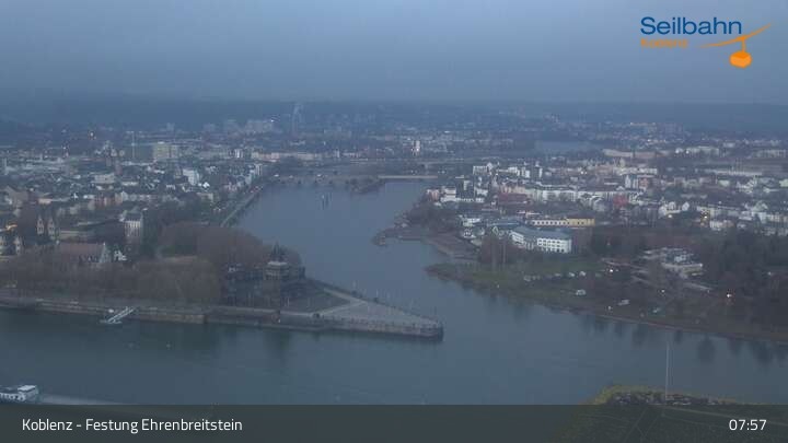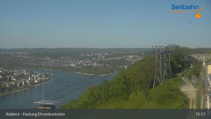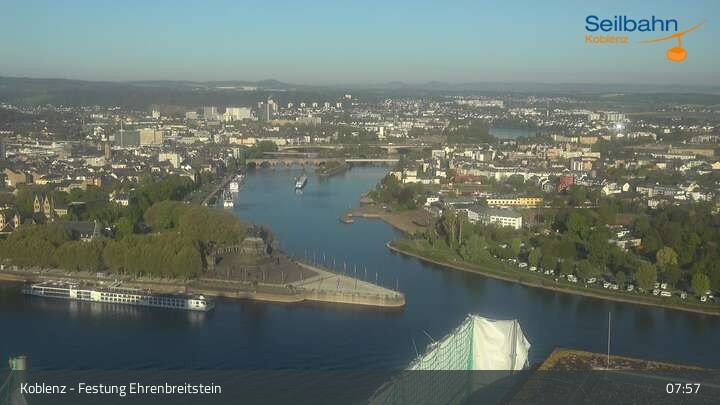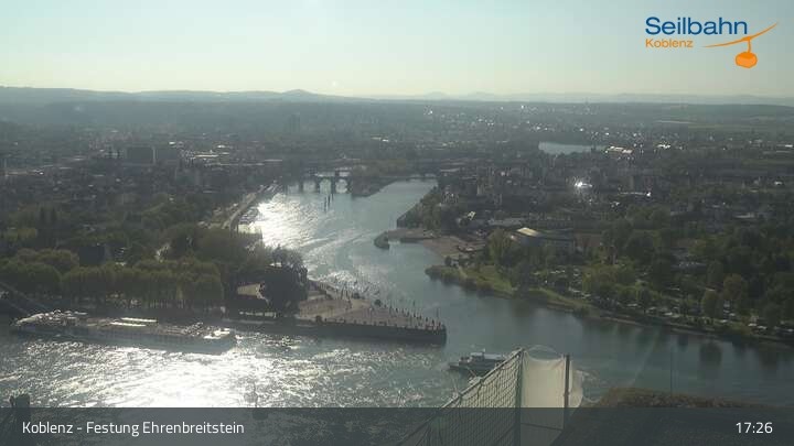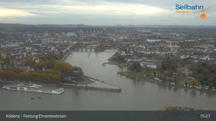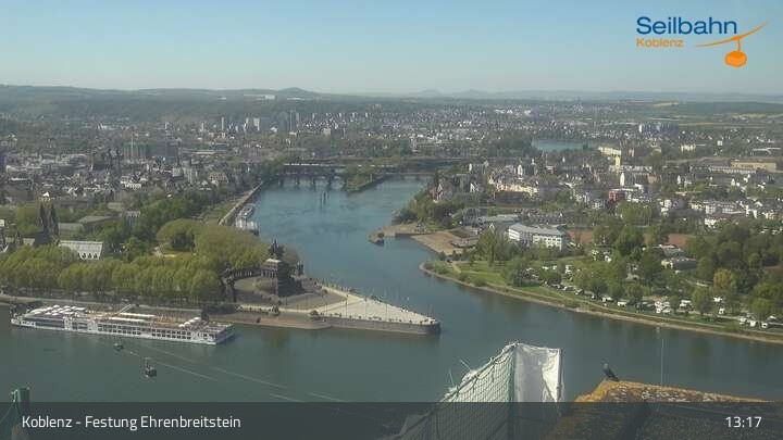 Webcam Koblenz: Blick von der Festung auf Seilbahn und Deutsches Eck, 160 m