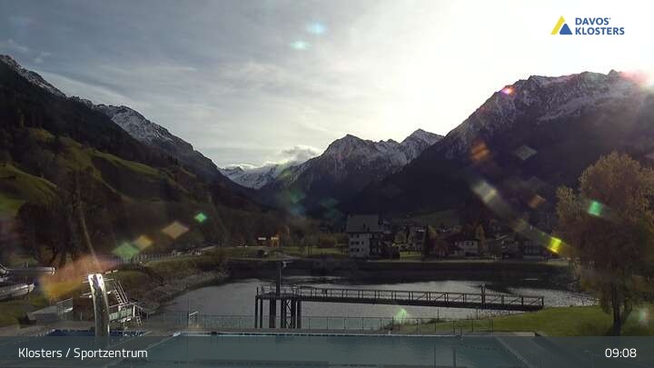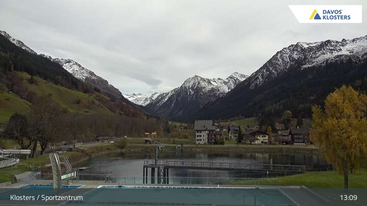 Hier siehst du das Sportzentrum und das Freibad in Klosters