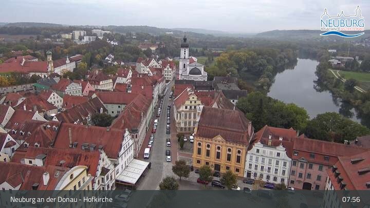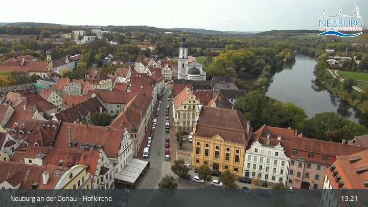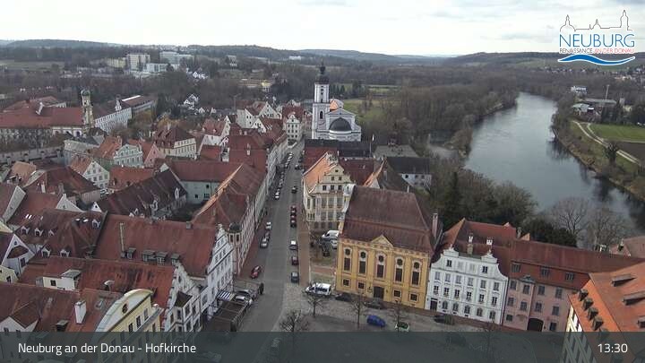 Die Webcam befindet sich an der Hofkirche in Neuburg an der Donau und blickt über den Karlsplatz bis zum Residenzschloss.