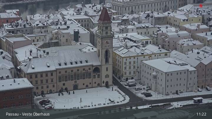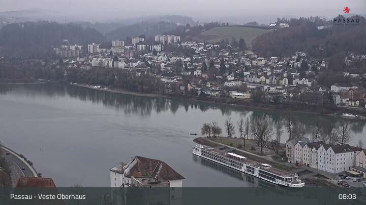Die Webcam zeigt einen tollen Panoramablick von der Veste Oberhaus auf die Donau und die Altstadt von Passau. Neber der herrschaftlichen Burgfassade sieht man sehr gut die Landzunge zwischen Donau und Inn, auf der die Altstadt mit ihren denkmalgeschützten Häusern liegt. Gut zu erkennen sind unter anderem die Ortspitze am Zusammenfluss der drei Flüsse, das an der Donau liegende Rathaus, der weiße Dom St. Stephan und das erhöhte Kloster Mariahilf in der Innstadt.