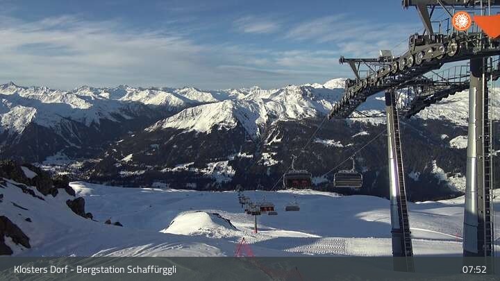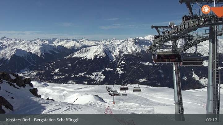 Diese Webcam zeigt die Bergstation des Schaffürggli Lifts auf der Madrisa. Der 2.770 m hohe Berg in den schweizer Alpen bietet vielfältige Wander- und Erlebniswege.