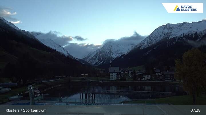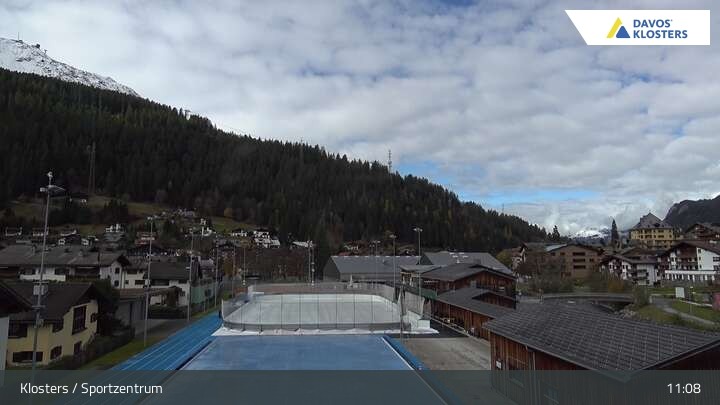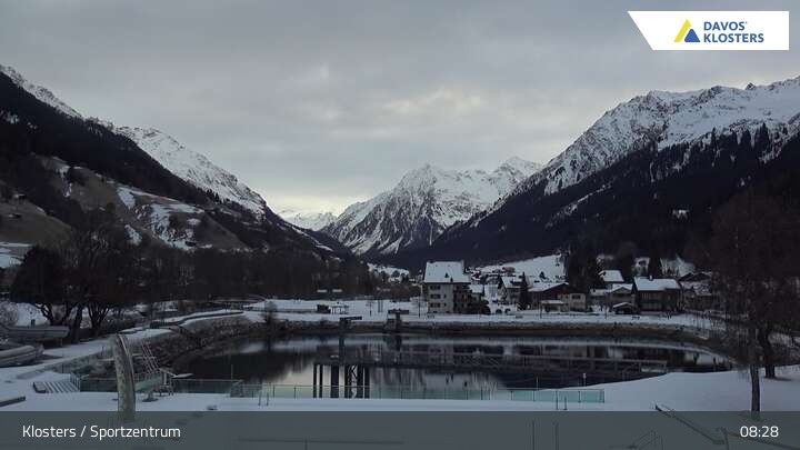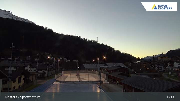 Hier siehst du das Sportzentrum und das Freibad in Klosters