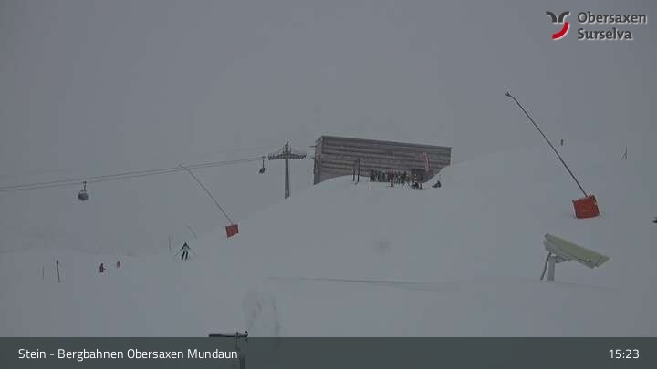 Die Webcam zeigt die Bergstation des Misanenga - Untermatt Lifts in Obersaxen in Graubünden. Die umliegende Alpenwelt ist ideal für Wanderungen und Mountainbiken geeignet.