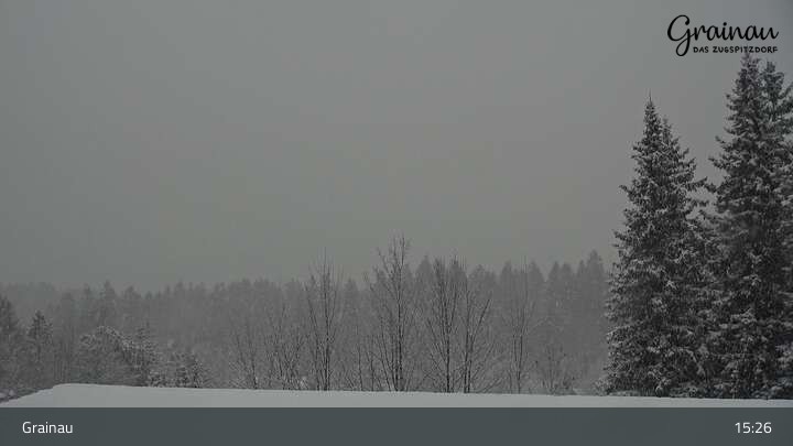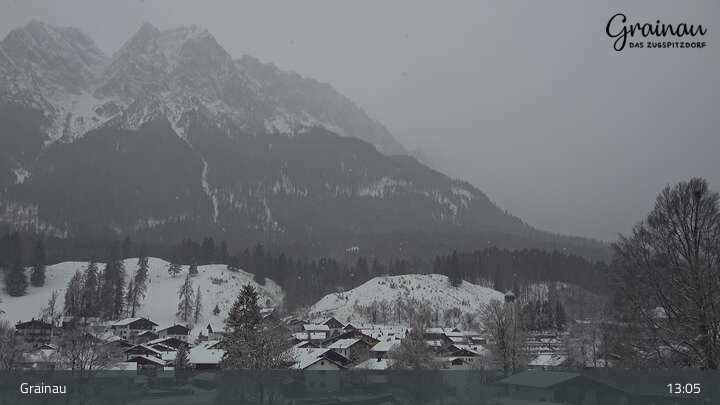 Die Live-Webcam zeigt vom Freibad aus einen Rundumblick auf das Bergdorf Grainau und seine Umgebung. Zu sehen sind unter anderem die Zugspitze, der große und kleine Waxenstein sowie der Hohe Ziegspitz.