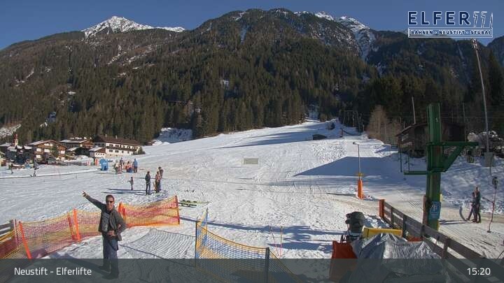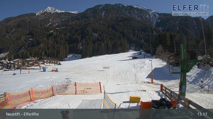 Die Webcam befindet sich in Krössbach bei Neustift - Hochstubai und zeigt das Übungsland des Skigebiets.