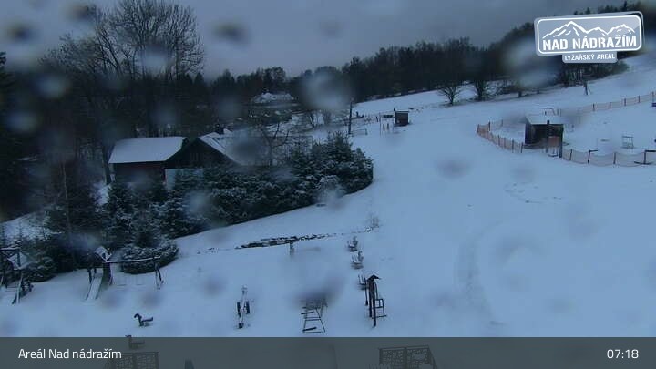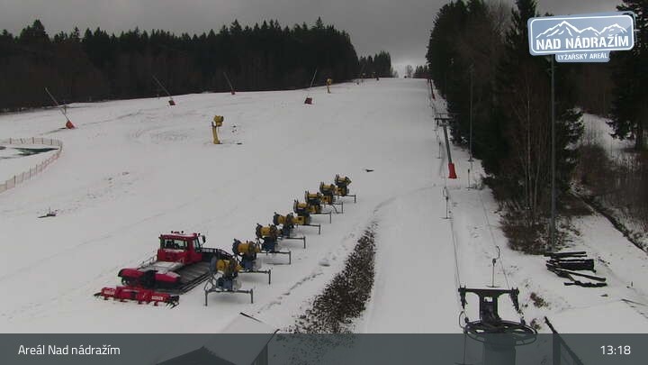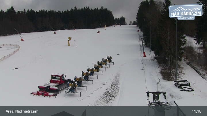 Die Webcam zeigt die Skilifte im Areal Nad nádražím bei Železná Ruda nahe der deutschen Grenze.