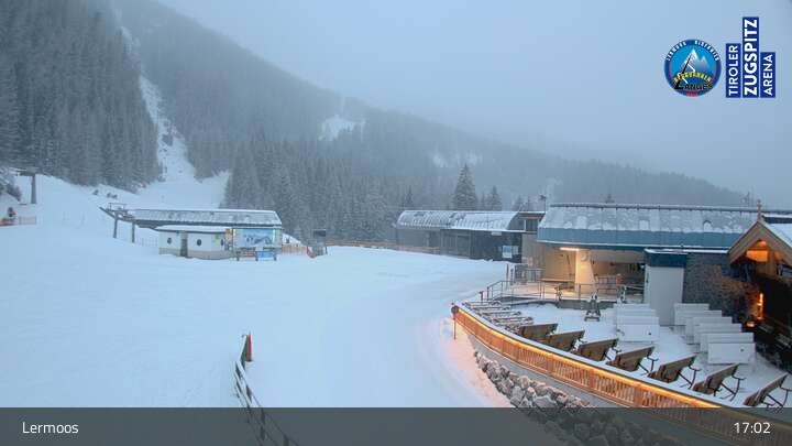 Die Webcam befindet sich an der Bergstation des Hochmoos Express in Lermoos und blickt auf die umliegenden Alpen.