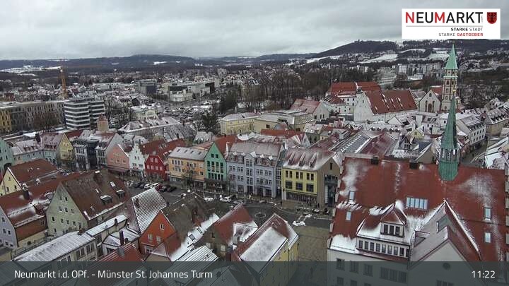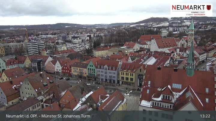 Die Webcam befindet sich am Turm der St. Johannes Kirche in Neumarkt in der Oberpfalz und zeigt einen tollen Panoramablick über die Stadt.