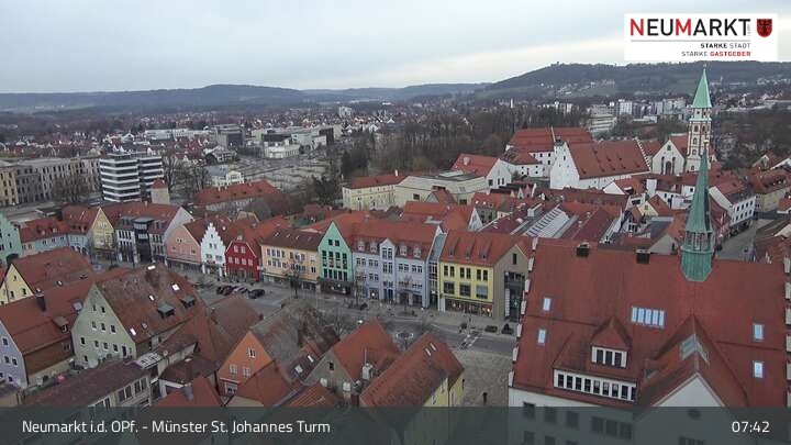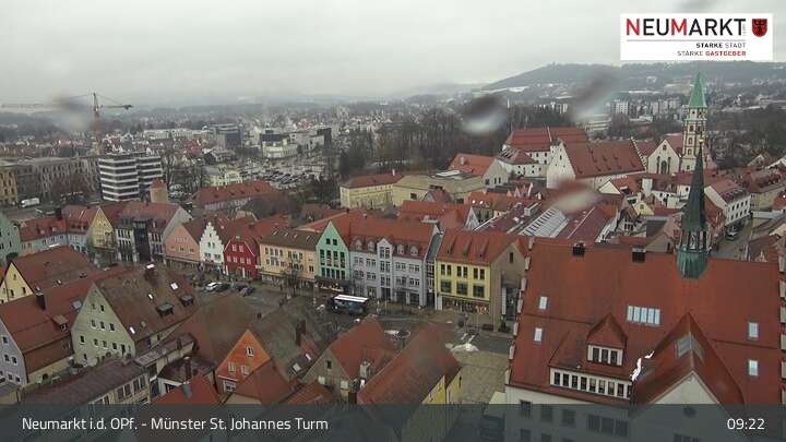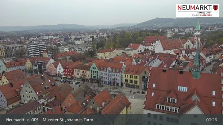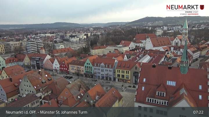 Die Webcam befindet sich am Turm der St. Johannes Kirche in Neumarkt in der Oberpfalz und zeigt einen tollen Panoramablick über die Stadt.