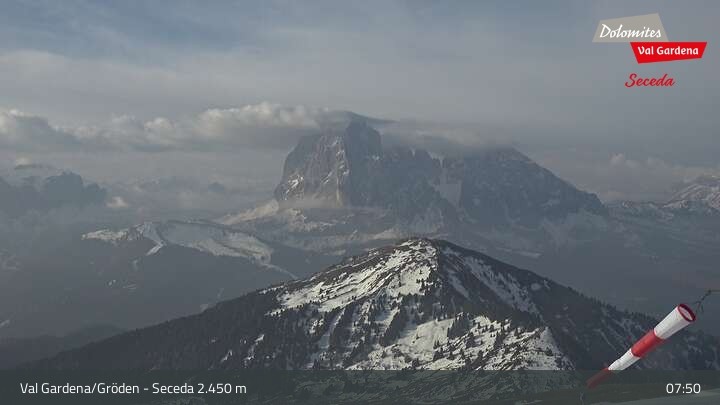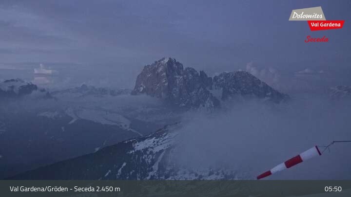 Von der Seceda eröffnet sich der Blick nach Süden zur Sellagruppe und dem Langkofel